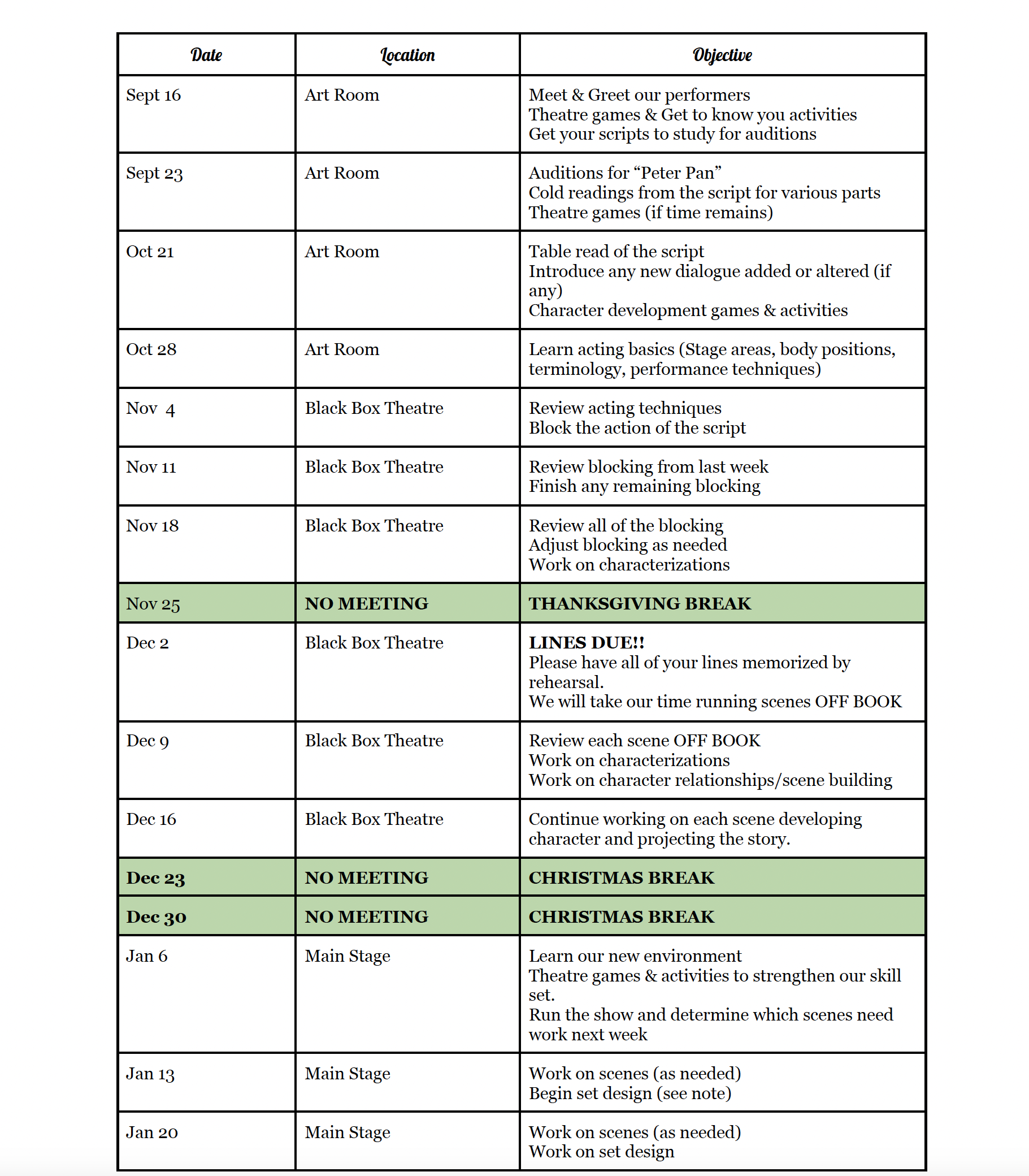 First class session is Tuesday, October 28th, 2025 at 3:45pm